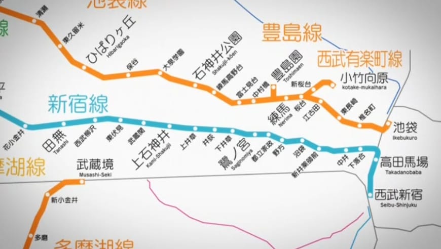終盤では、電車が「池袋まであと30駅」と知らされるシーンがあります。