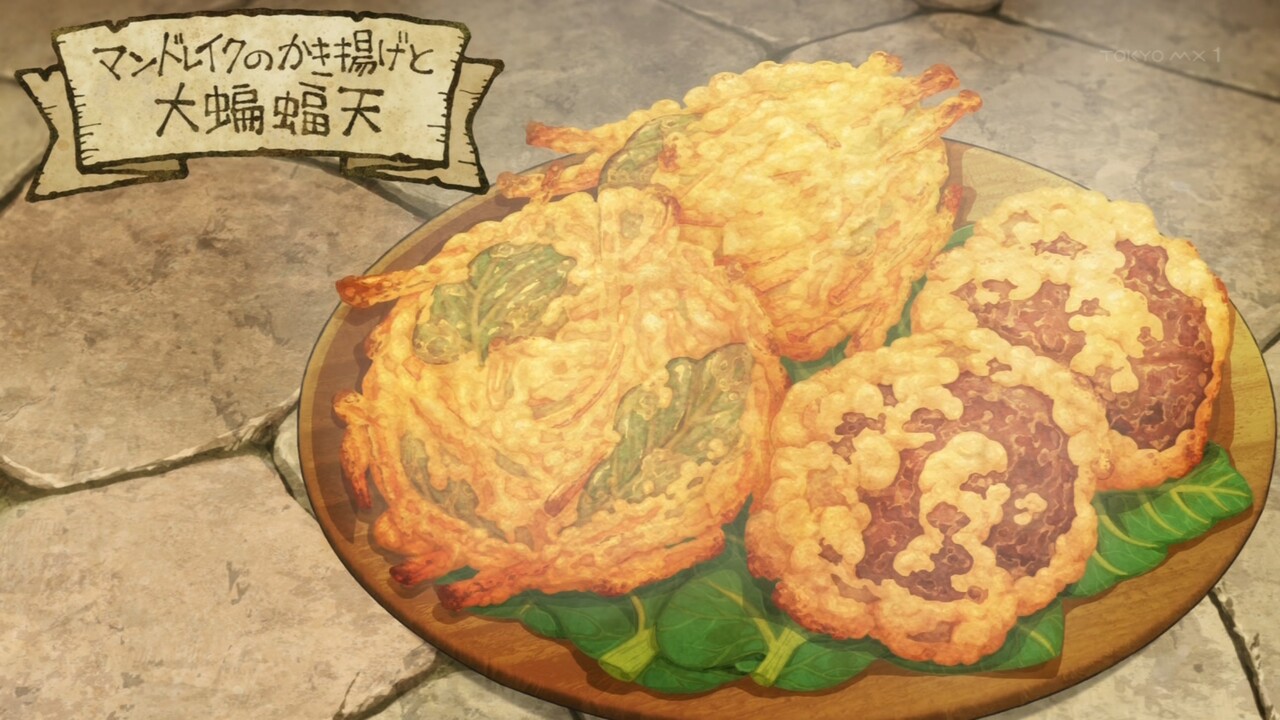また、ダンジョンの罠に使われていたオリーブオイルで揚げたかき揚げも登場しました。