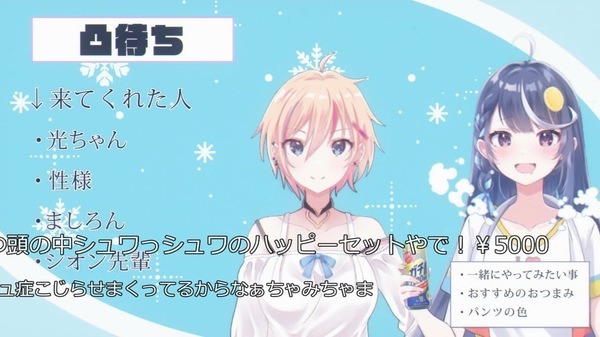 同期の仲間たちも次々と凸(突撃)してきて、賑やかな配信となりました。